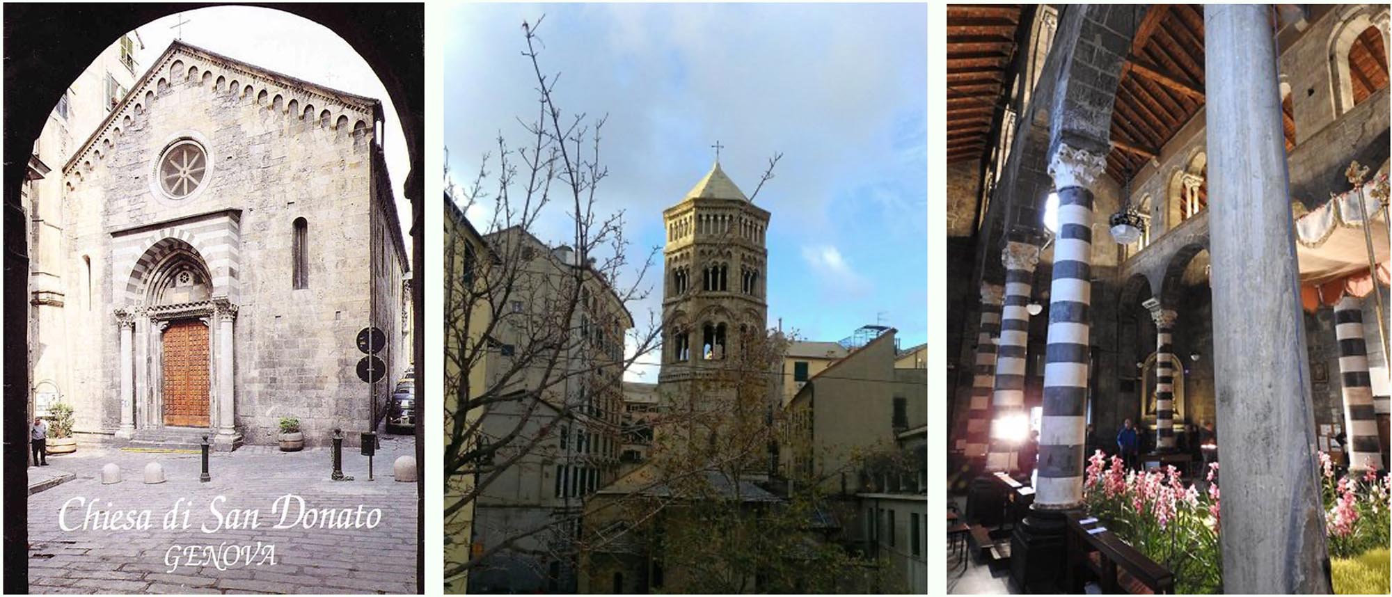 La facciata della chiesa e il campanile testimoniano l’architettura romanica, che a Genova assume il linguaggio portato dai maestri antelamici, costruttori e intagliatori di pietre provenienti dalla Lombardia. Uno dei segni caratteristici della loro architettura è il riutilizzo di materiali recuperati da rovine di architettura romana. È il caso della cornice in marmo con foglie e grifi, magistralmente ricontestualizzata come architrave del portale d’ingresso o le dieci colonne e i quindici capitelli dell’interno, che oggi vediamo luminosamente settecentesco, ma che conserva l’impianto a tre navate della basilica romanica.